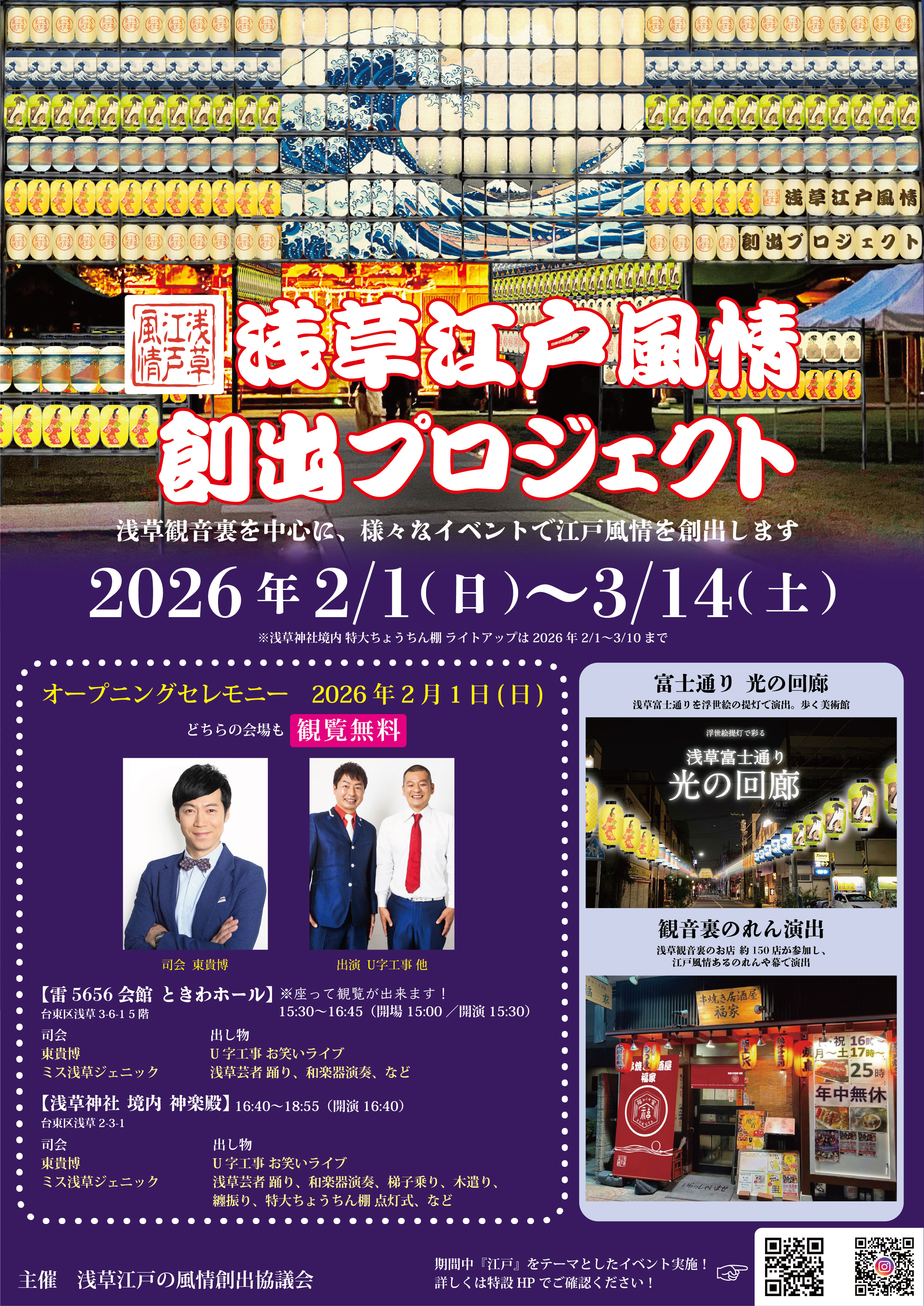 U字工事のお笑いライブや、東MAX、浅草芸者なども無料で見れます!